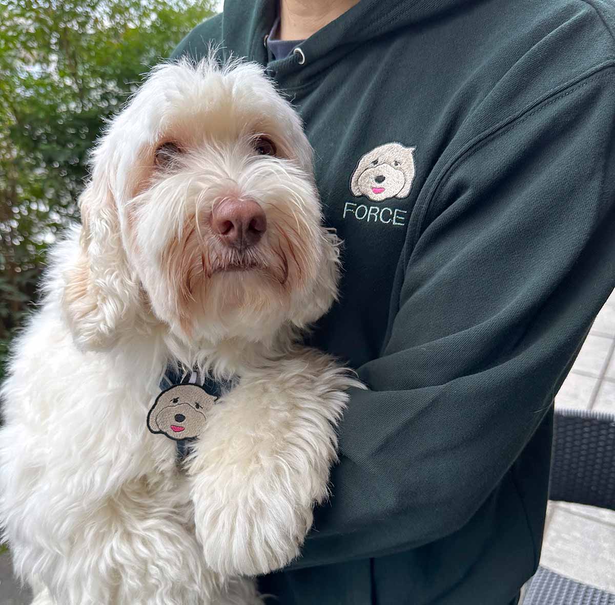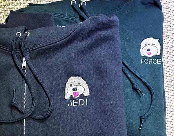 角布のチャーム制作は、すべて、イラストレーターによるオリジナルの手書きイラストからはじまります。この手書きの作業が、とても優しい、あたたかい雰囲気をまとったドッグチャーム制作の一番大事な作業です。両面刺繍チャームができるまで1. イラスト作成似顔絵ドッグチャーム、犬種ごと