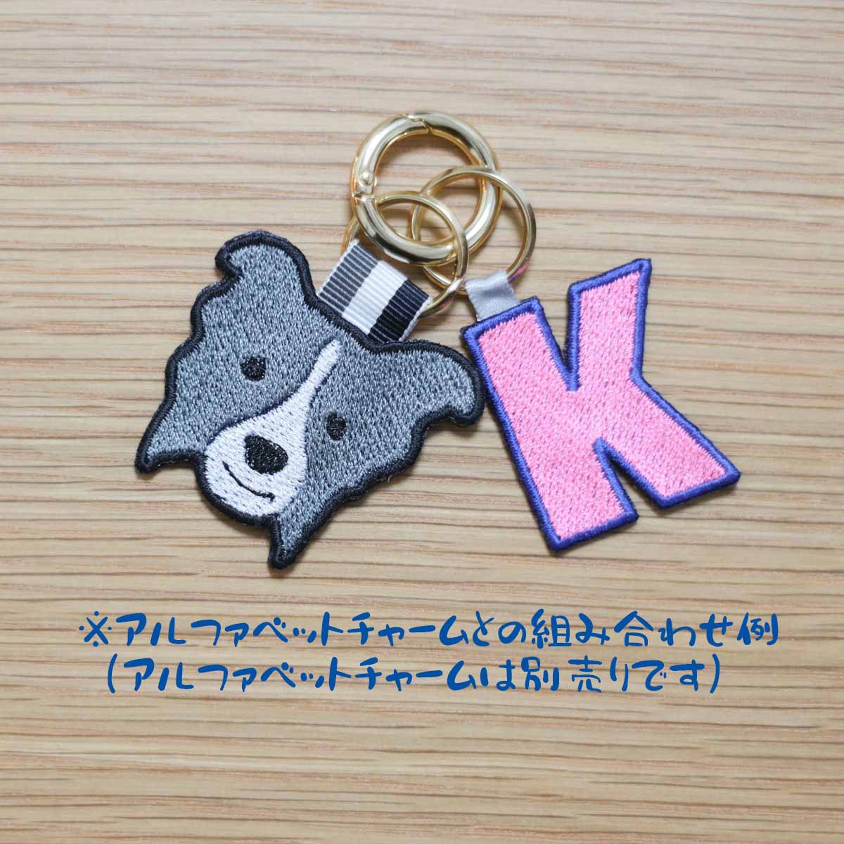 両面刺繍の愛らしいドッグチャーム、刺繍チャームはとても軽量で、首輪に付けたり、ハーネスに取り付けたり、リードの接続部分に取り付けたりと、様々な使い方ができます。お散歩バッグのチャームにも使えます。