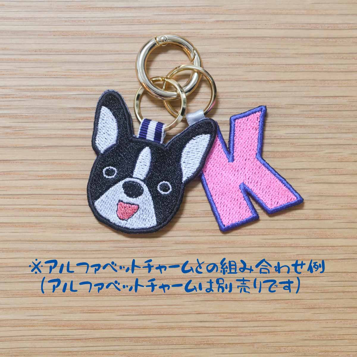 両面刺繍の愛らしいドッグチャーム、刺繍チャームはとても軽量で、首輪に付けたり、ハーネスに取り付けたり、リードの接続部分に取り付けたりと、様々な使い方ができます。お散歩バッグのチャームにも使えます。