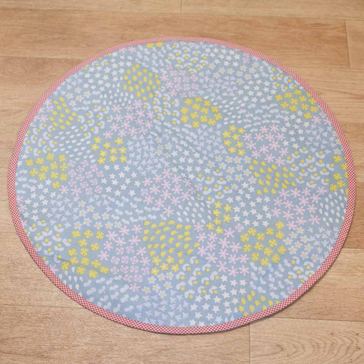 生地の間には軽くて丈夫な芯地が入っているため、生地3枚分の厚さで、軽量・丈夫なカフェマットになっています。小さく折り畳めるため、持ち運びにも便利です。