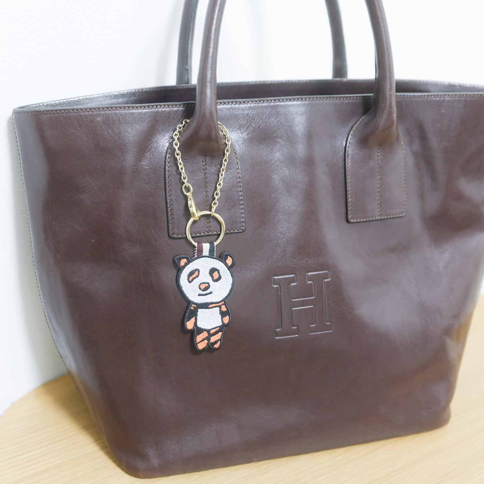 角布オリジナルキャラクター「サイケパンダ」の両面刺繍バッグチャームです。