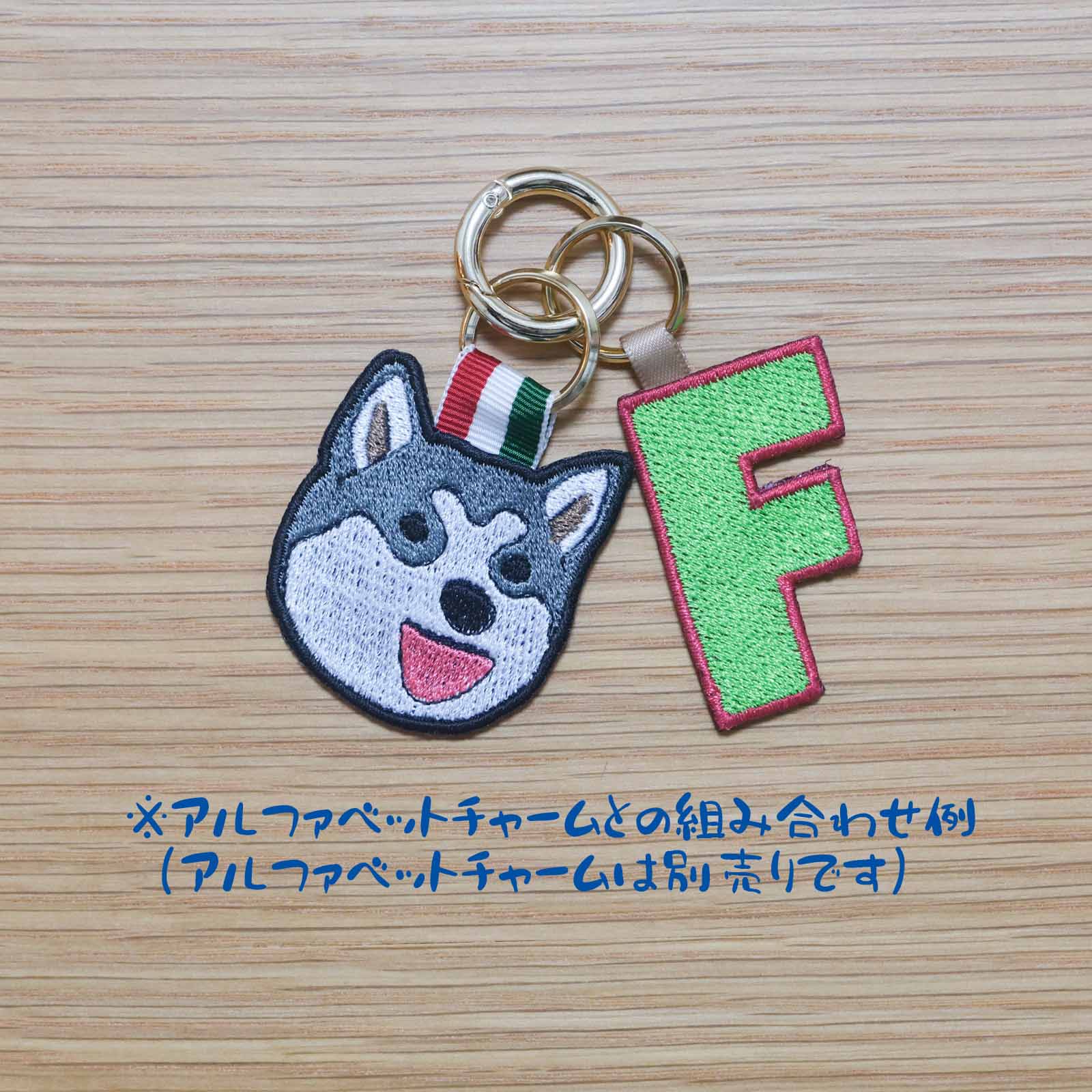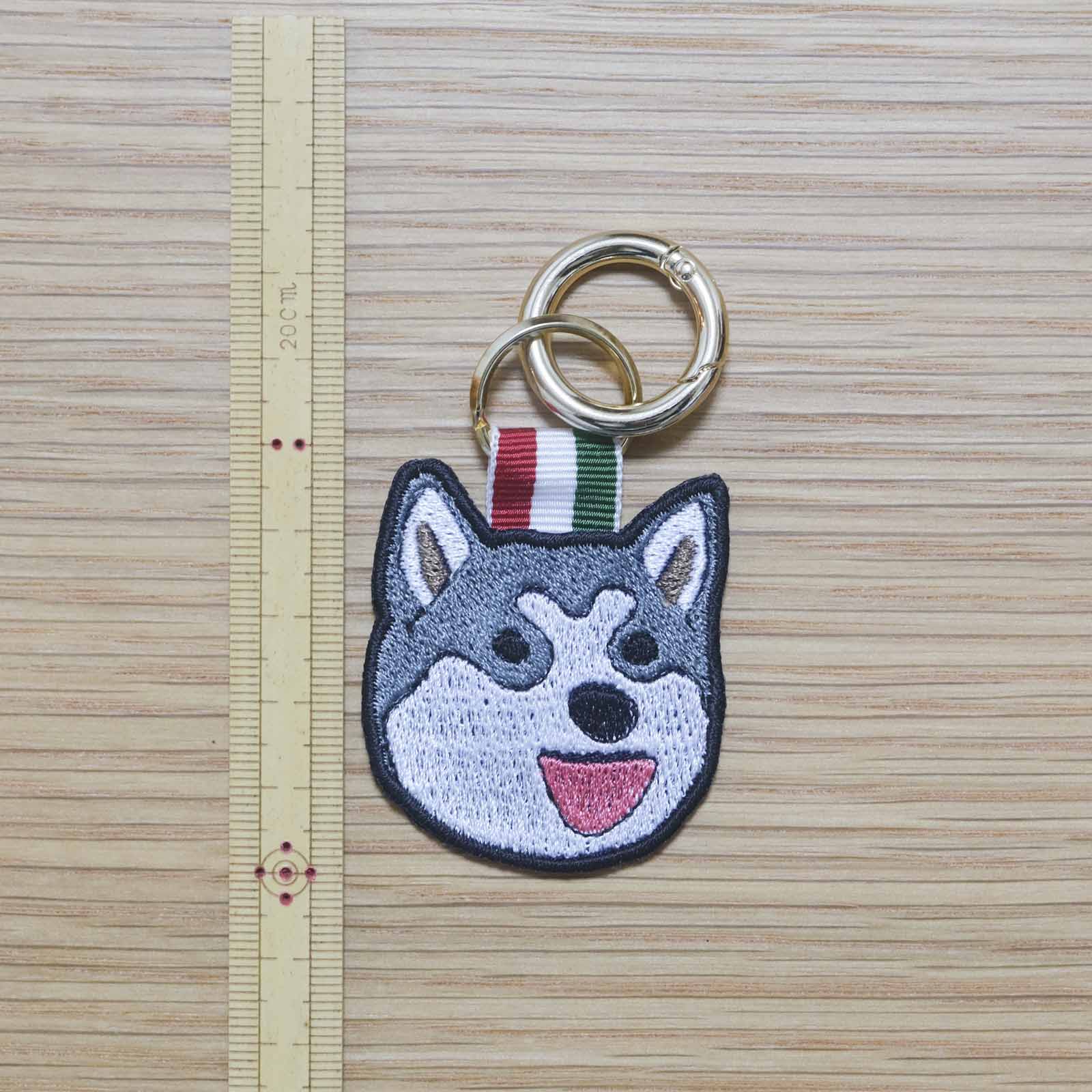 両面刺繍の愛らしいドッグチャーム、刺繍チャームはとても軽量で、首輪に付けたり、ハーネスに取り付けたり、リードの接続部分に取り付けたりと、様々な使い方ができます。お散歩バッグのチャームにも使えます。
