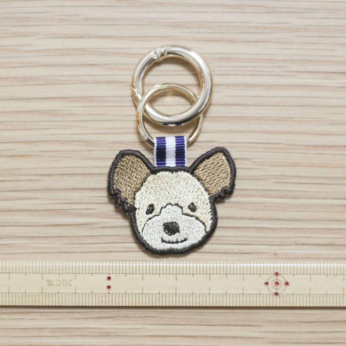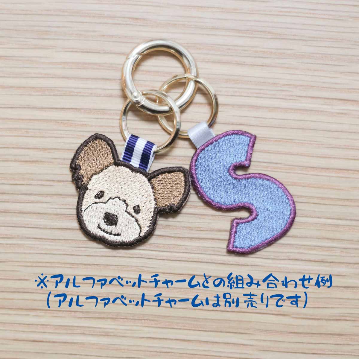 両面刺繍の愛らしいドッグチャーム、刺繍チャームはとても軽量で、首輪に付けたり、ハーネスに取り付けたり、リードの接続部分に取り付けたりと、様々な使い方ができます。お散歩バッグのチャームにも使えます。