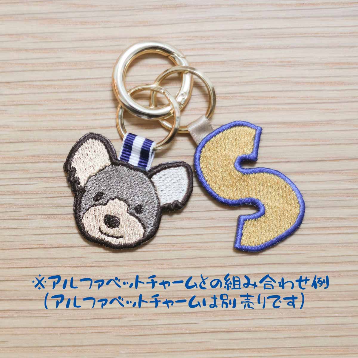 両面刺繍の愛らしいドッグチャーム、刺繍チャームはとても軽量で、首輪に付けたり、ハーネスに取り付けたり、リードの接続部分に取り付けたりと、様々な使い方ができます。お散歩バッグのチャームにも使えます。